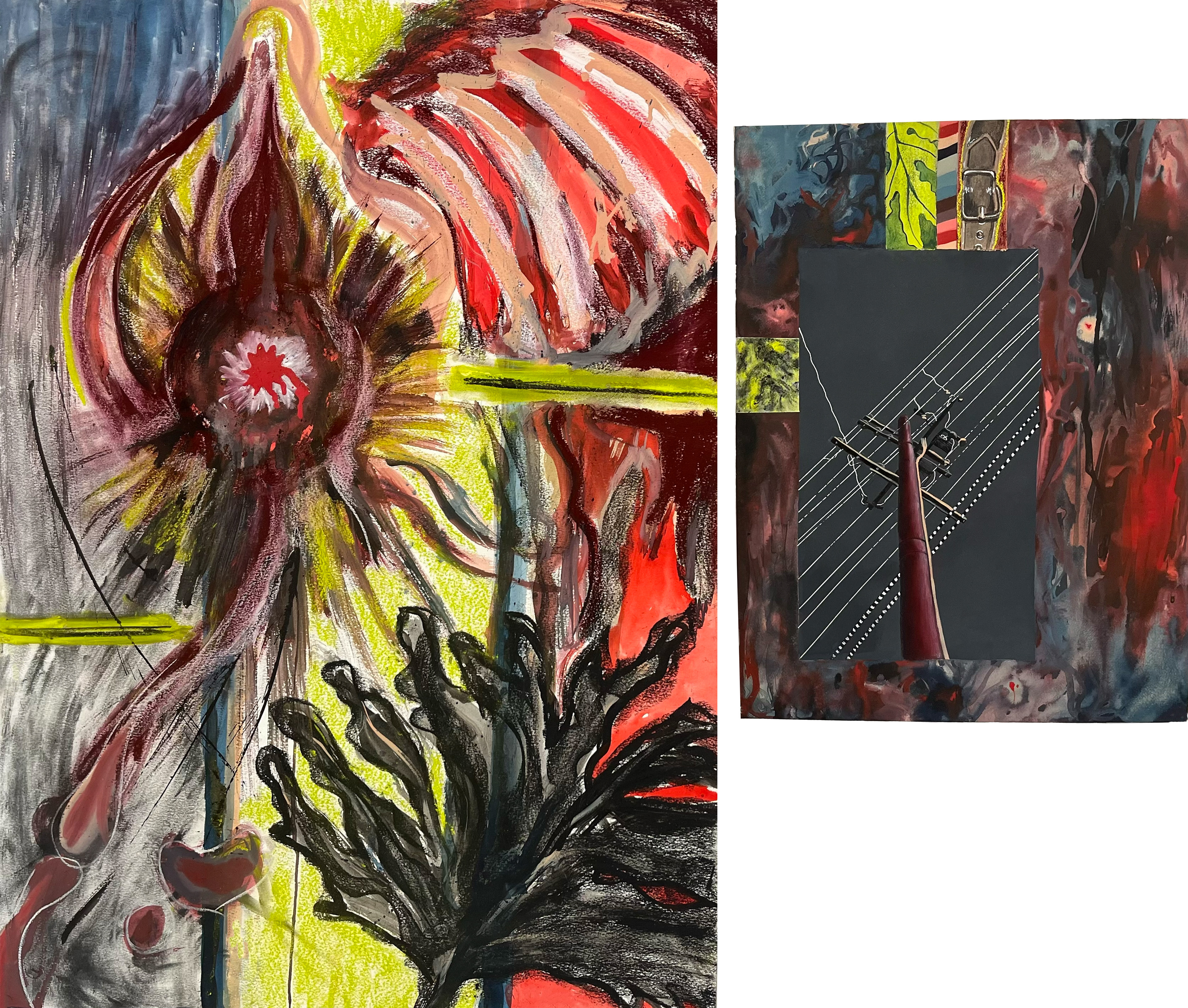 Acrylic ink, soft pastel, and charcoal on paper